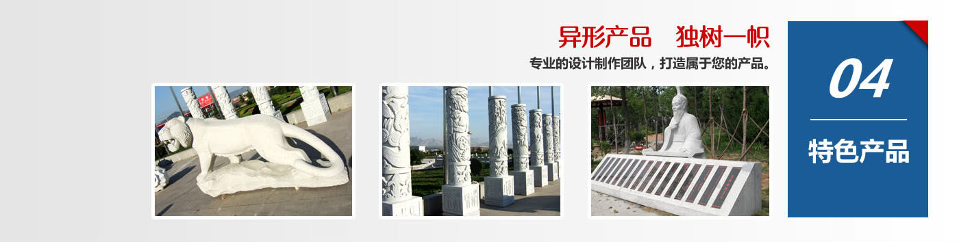 纽斯顿石业主要加工五莲红、五莲花、皇室棕钻、芝麻灰、白麻、山东锈石、芝麻黑、中国黑、济南青、灰麻产品、五莲灰、新虾红、莒红等、山东六色砂岩、五彩砂岩和各种出口板材。品种多达:外墙干挂板,毛光板,楼梯踏步板,火烧板,盲道板,机刨板,荔枝面,剁斧石,路边石,弯道石,台阶石,蘑菇石,花坛石,小方块石,挡车石,石线条,建筑用块石,大型门牌石,墓碑石和桥柱桥栏,圆柱,风水球等各种板材和弧形异型加工。擅长异形加工,用先进设备为客户提供优质特色产品。专业生产S形路沿石、三维O形花坛石、大型门牌石、立体字雕刻、镂空雕刻等工艺产品。