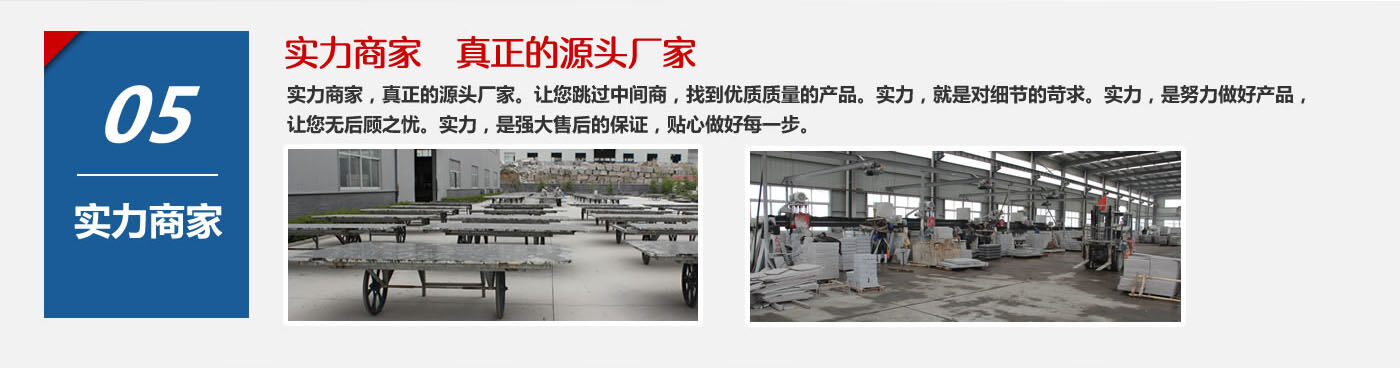 纽斯顿石材先后引进了各类先进设备50多台/套,已建成五莲石材产品园中独具规模的石材厂家;拥有仿形设备,红外线设备,全自动连续抛光机等先进的加工设备,形成了配套齐全的产品结构,真正实现超市式经营,一站式服务。